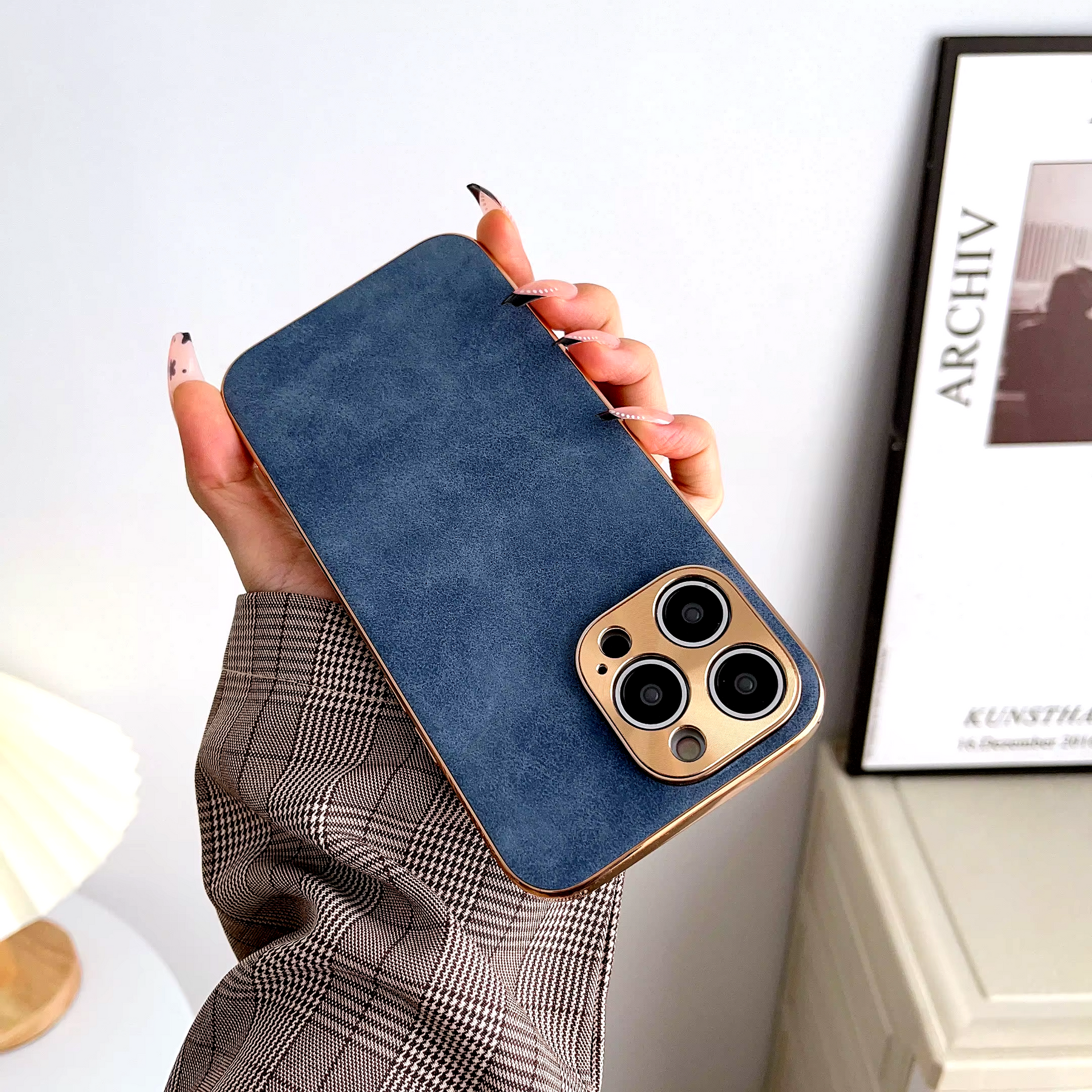 This iPhone case features a buttery leather finish paired with a smooth, gold-edged frame, designed to feel premium, look sleek, and keep your phone protected in style.