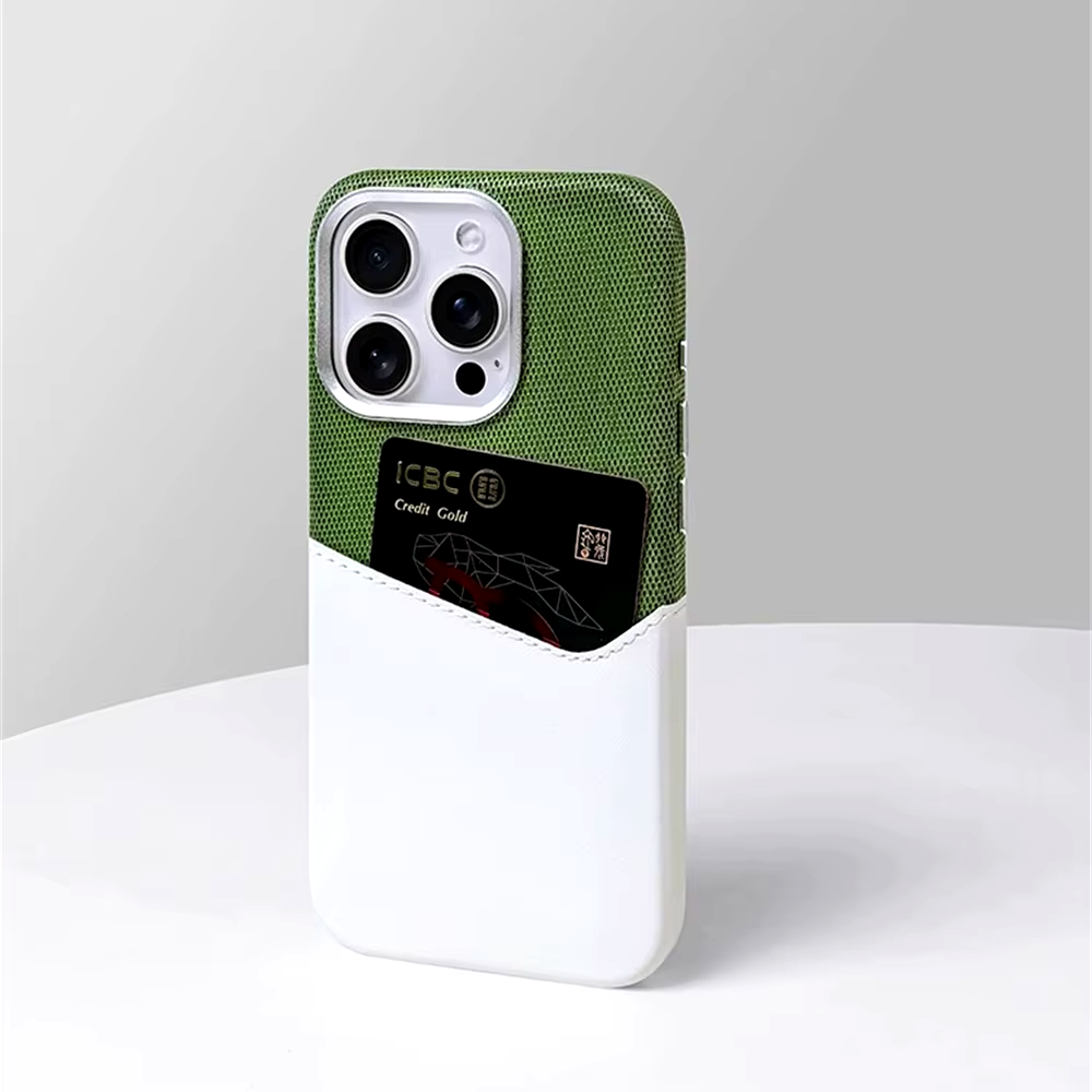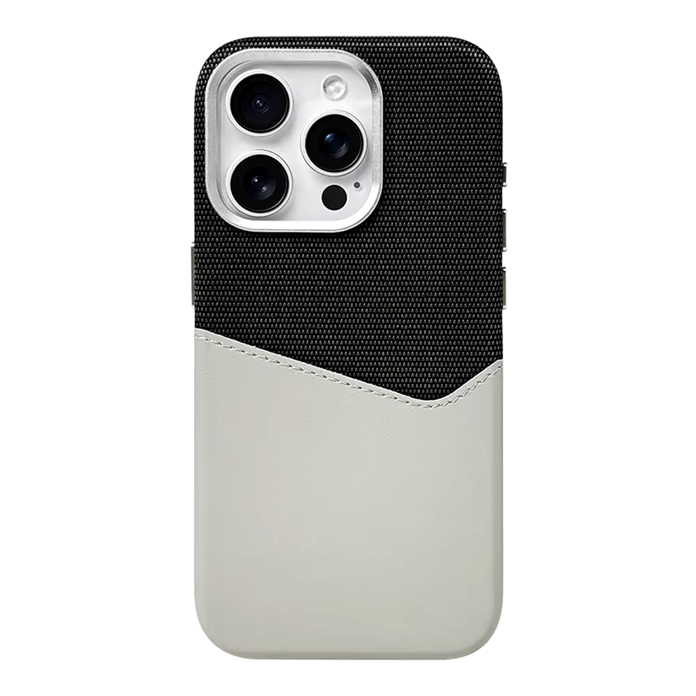 Fabric-textured upper delivers a refined touch, while the premium leather-like card pocket keeps essentials within reach. This iPhone case ages beautifully.