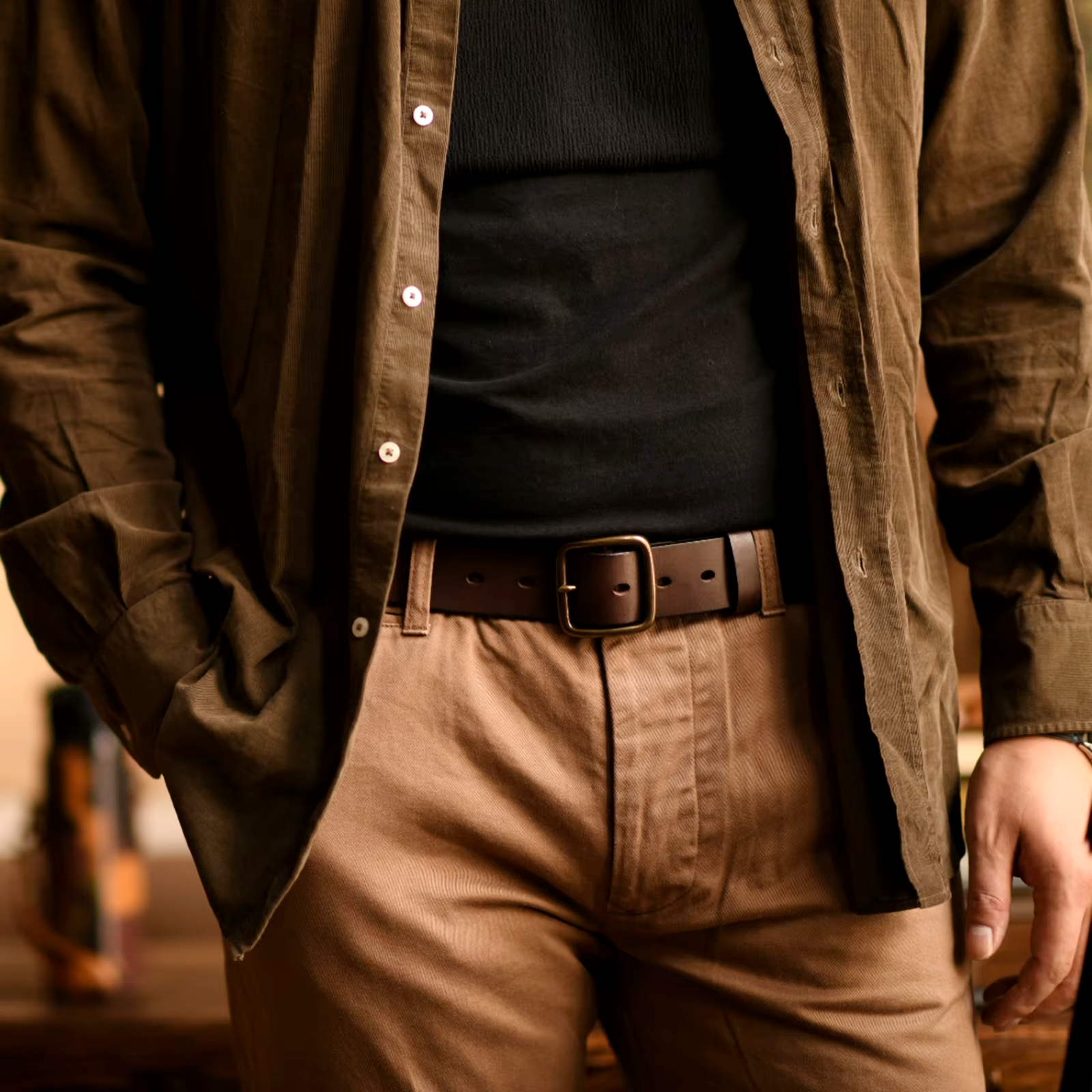 Timeless genuine leather construction with a rich textured finish, hand-stitched detailing, and flexible leather that molds to your body over time. Durable for long-lasting wear, his belt is soft and supple for those days when you just want to relax.
